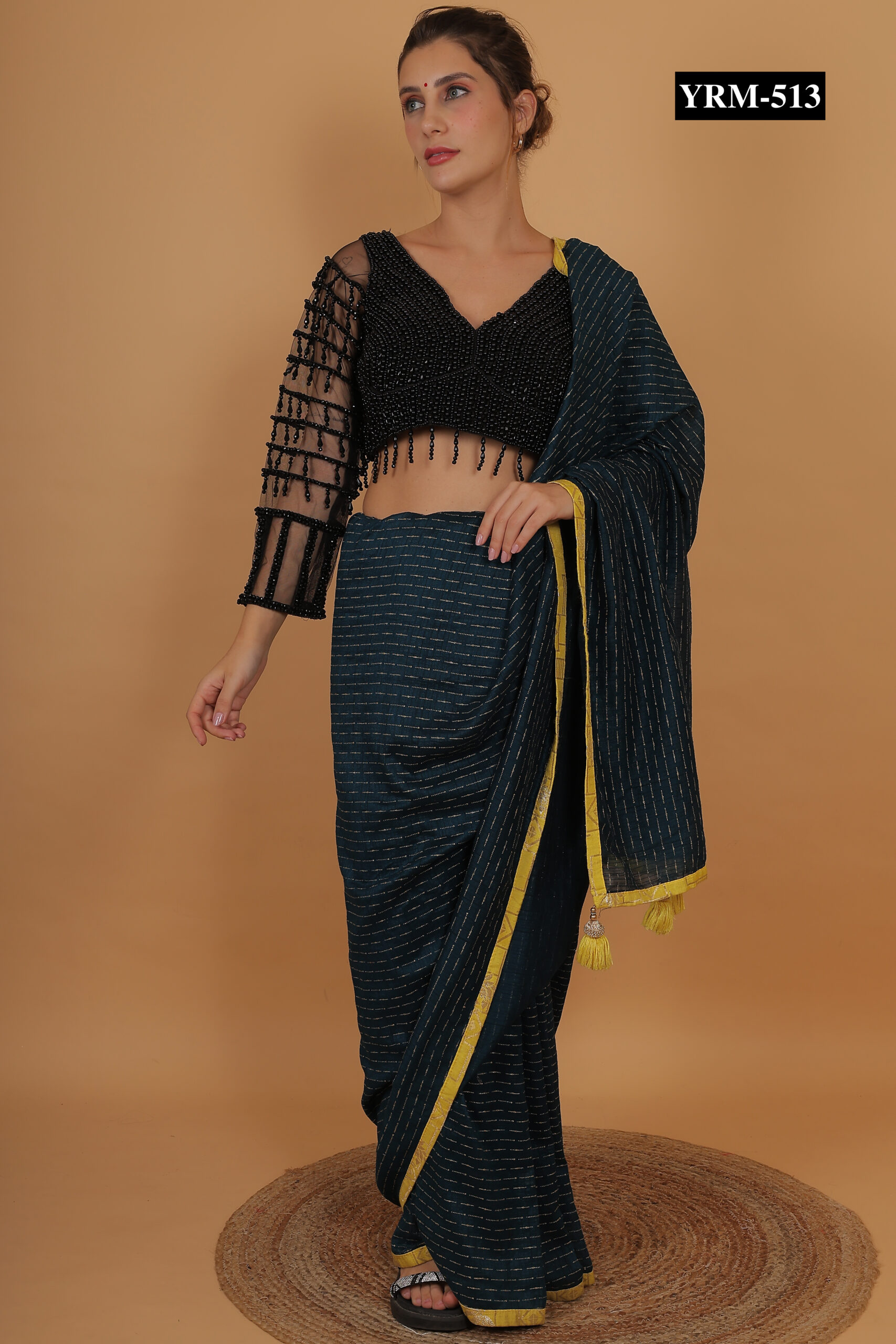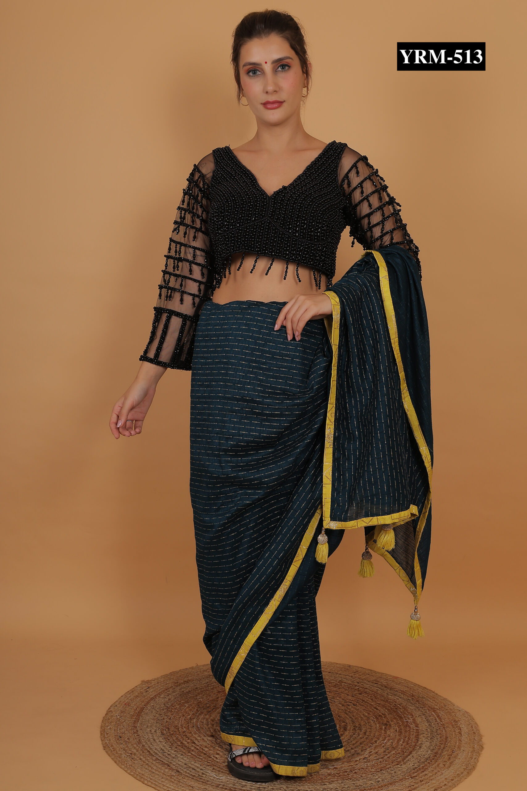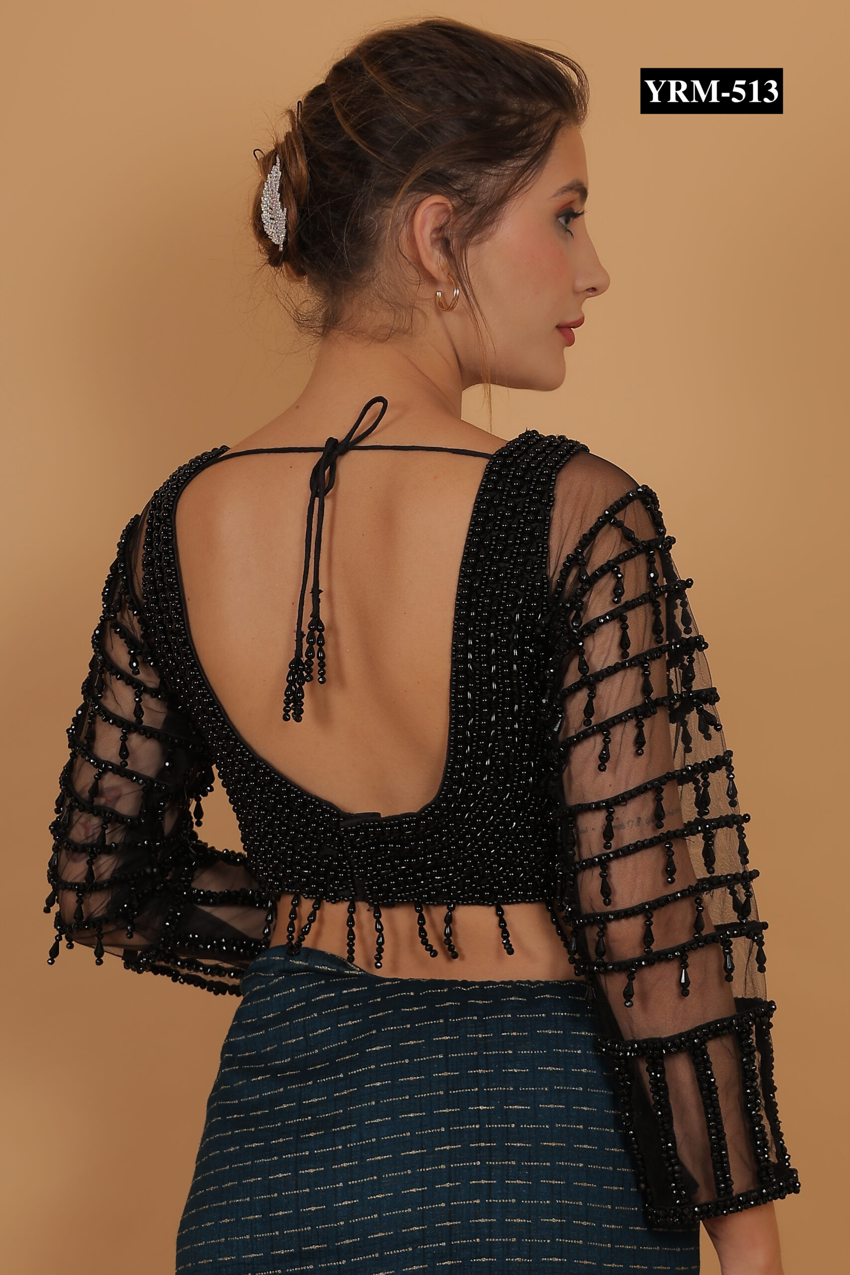 This Black Pearl Full Sleeve Blouse pairs beautifully with silk, chiffon, or georgette sarees to create a polished, elegant ensemble. The pearl detailing subtly reflects light, adding a refined glow to your outfit. Accessorize with statement jewelry for a glamorous effect or minimalist pieces for understated elegance.
