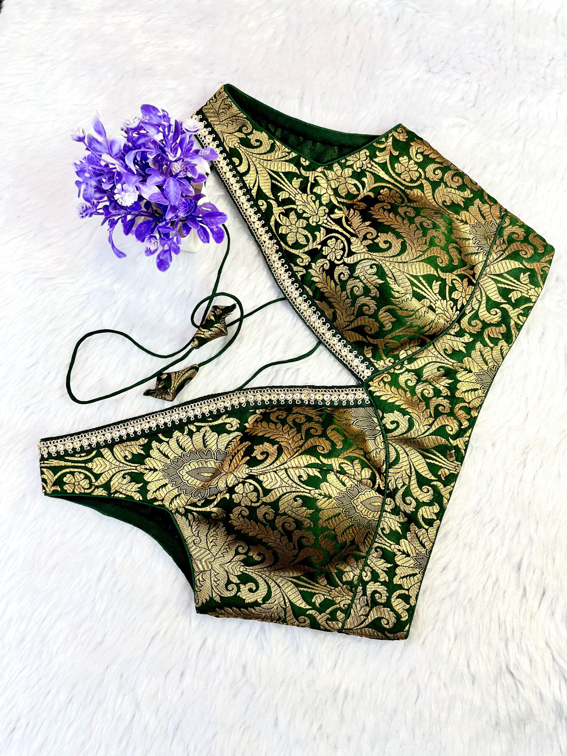 Designer blouse for sarees and lehengas with rich brocade fabric.