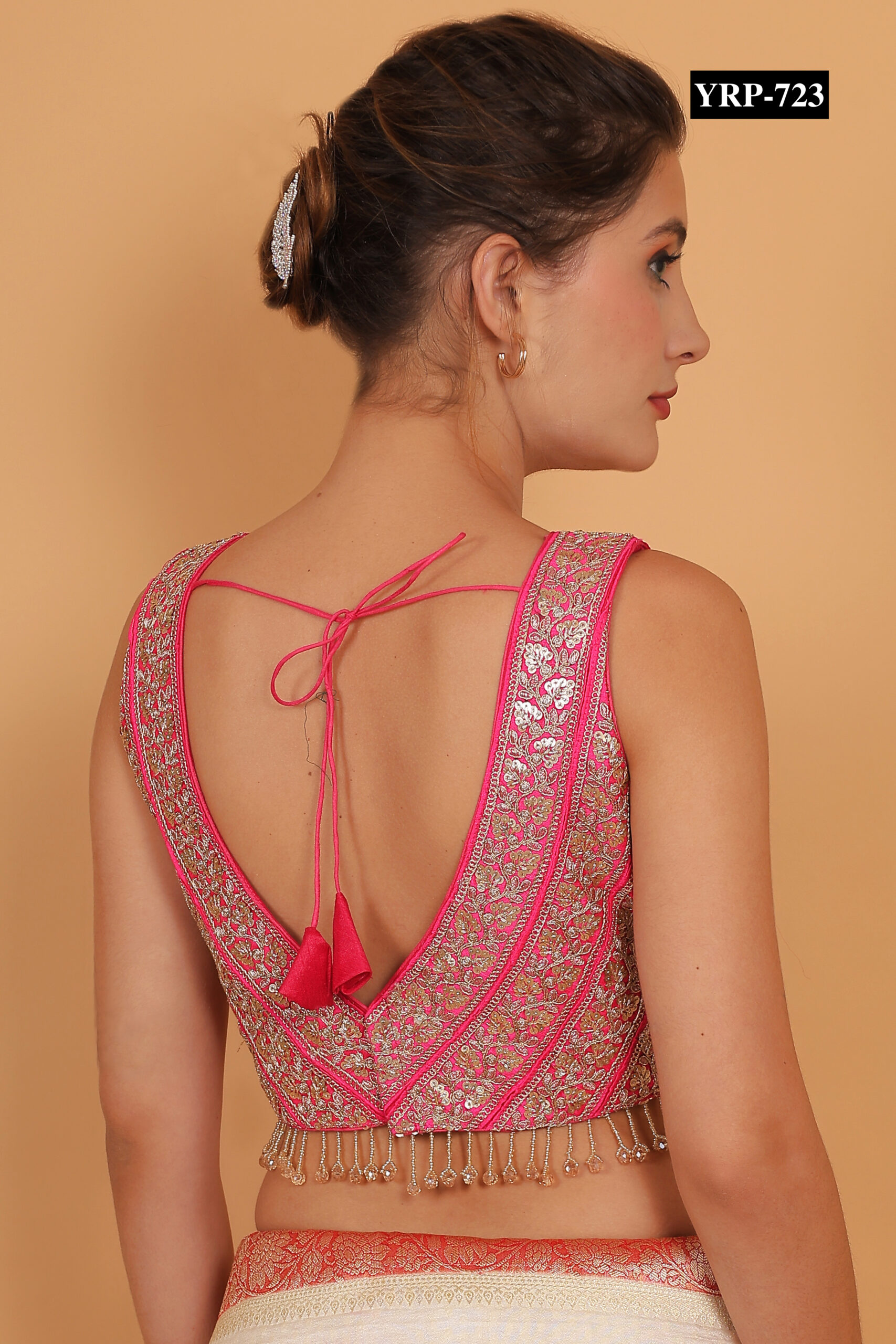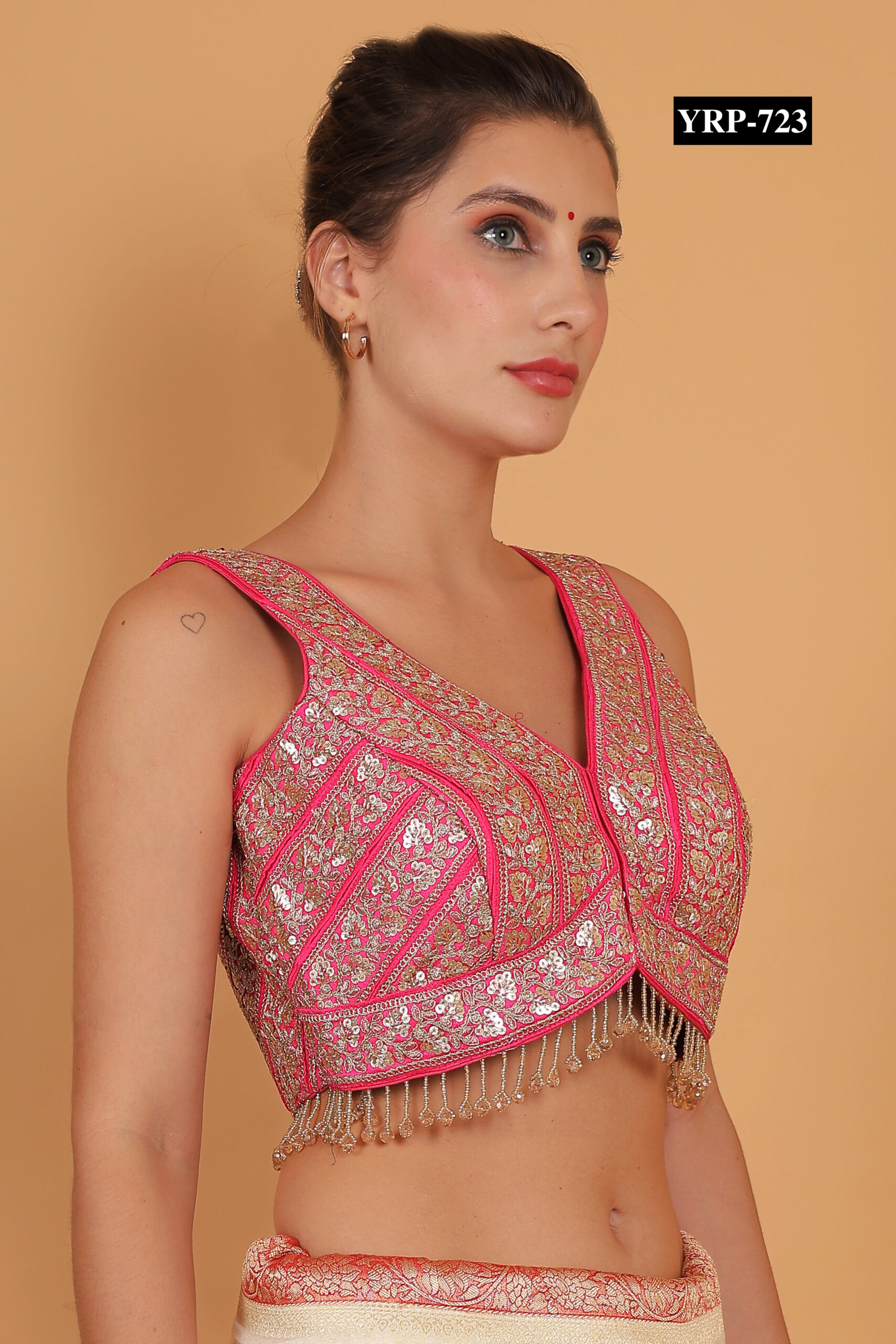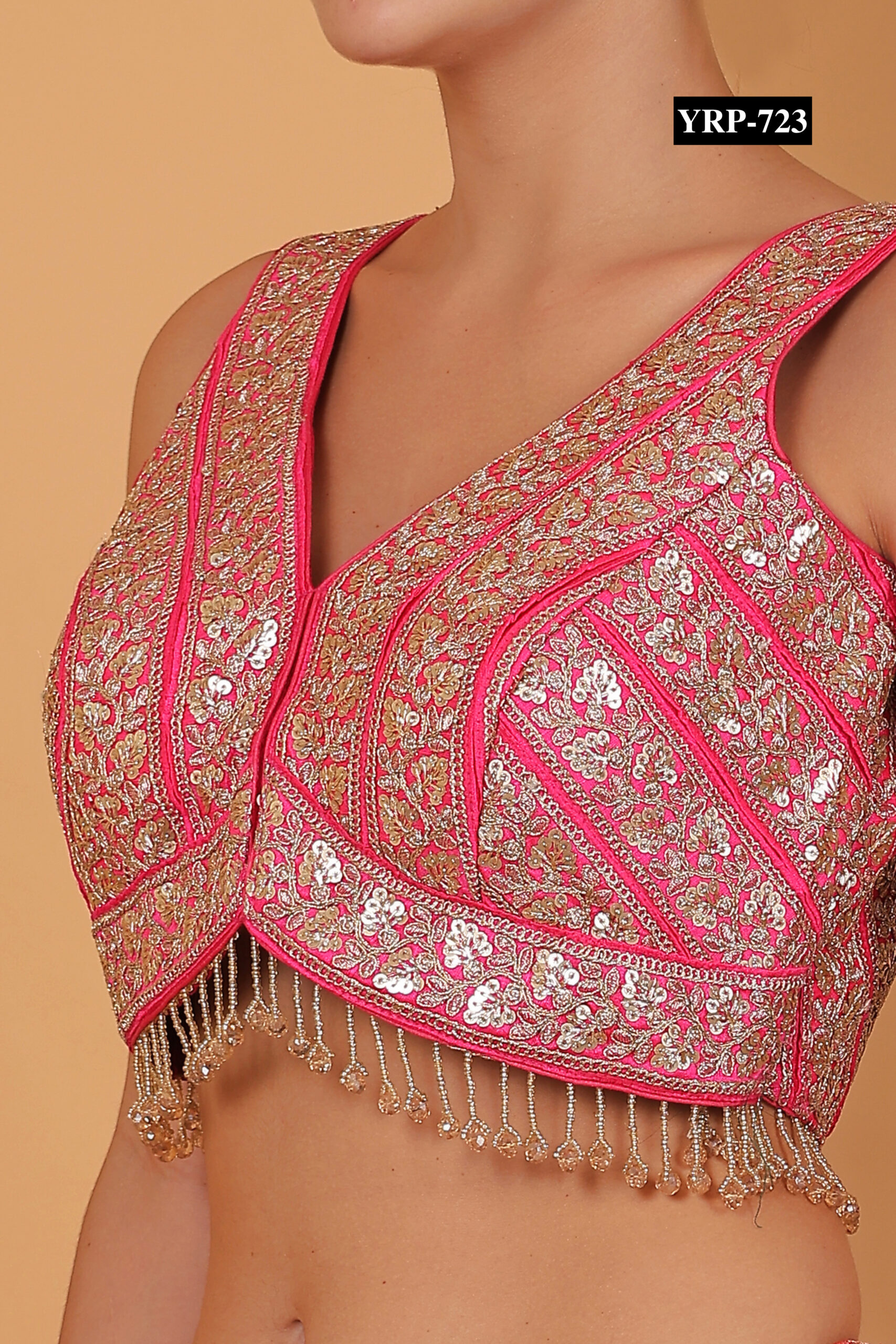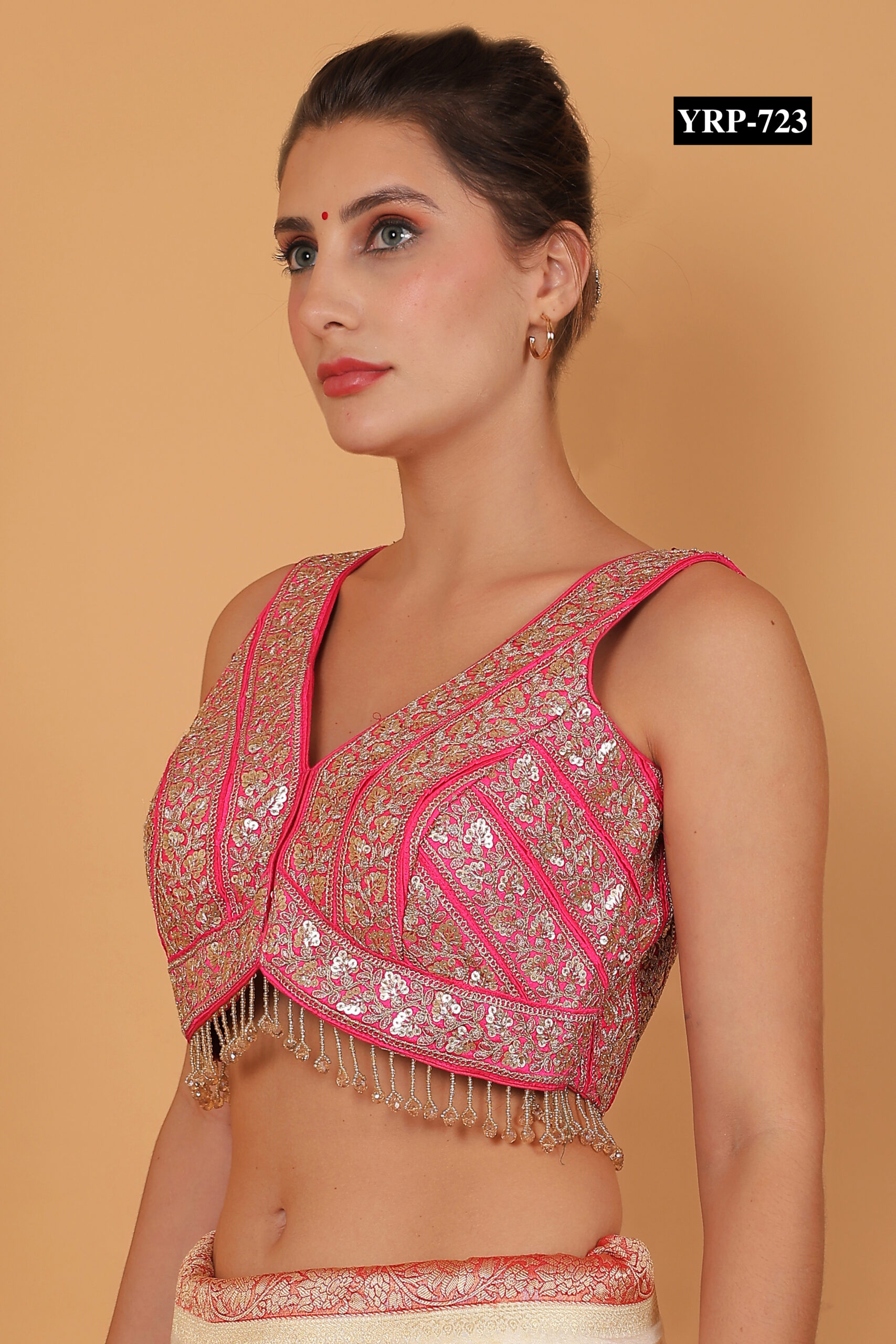 This Hot Pink Gold Tassel Top brings together Indian craftsmanship and modern design. Whether you wear it for a festive dinner or a grand event, it ensures you stand out effortlessly. The attention to fine detailing and flawless stitching reflects quality that lasts for years.