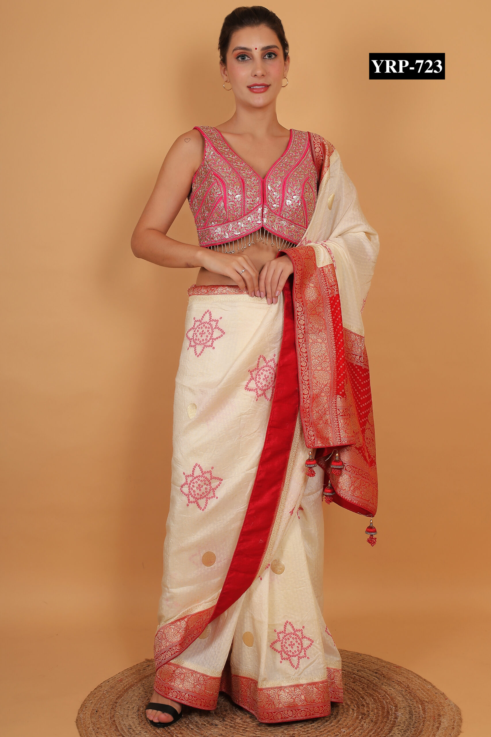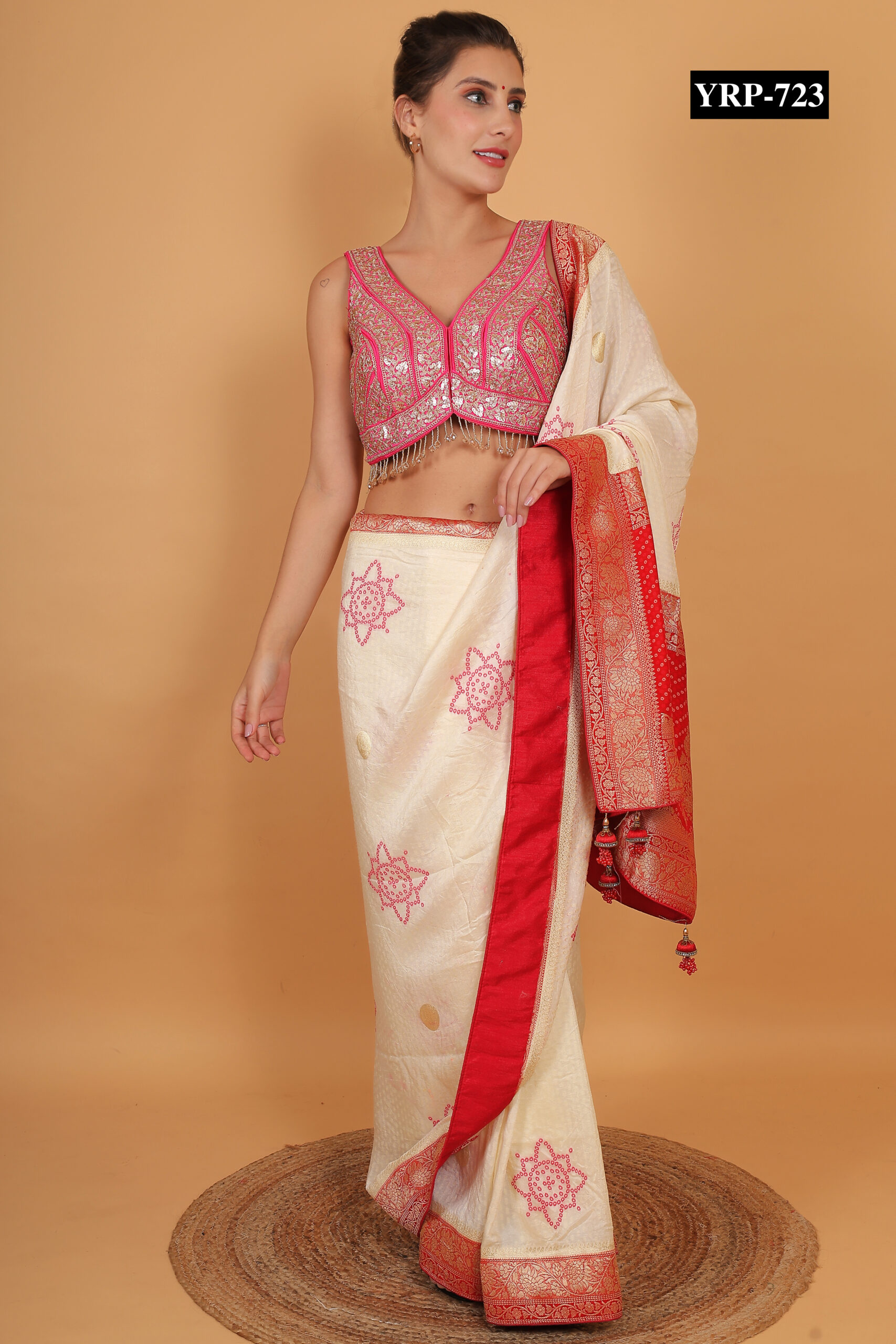 Bright, bold, and beautifully crafted, the Hot Pink Gold Tassel Top captures festive charm and luxury in one design. The rich pink hue glows with confidence, while the golden tassels add a touch of glamour. Designed for modern women who adore traditional elegance, this top blends sophistication with playful details that make every outfit stand out.