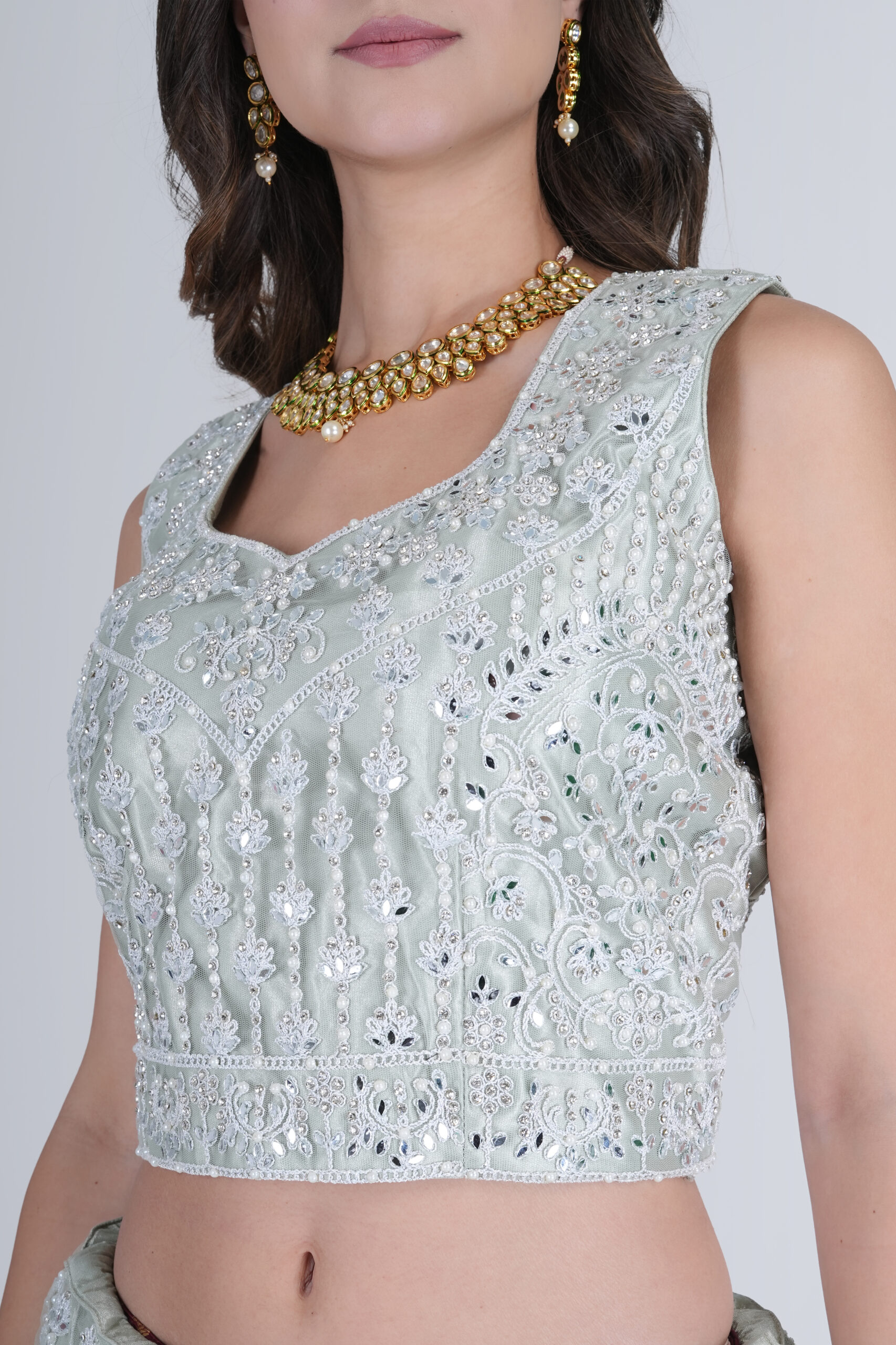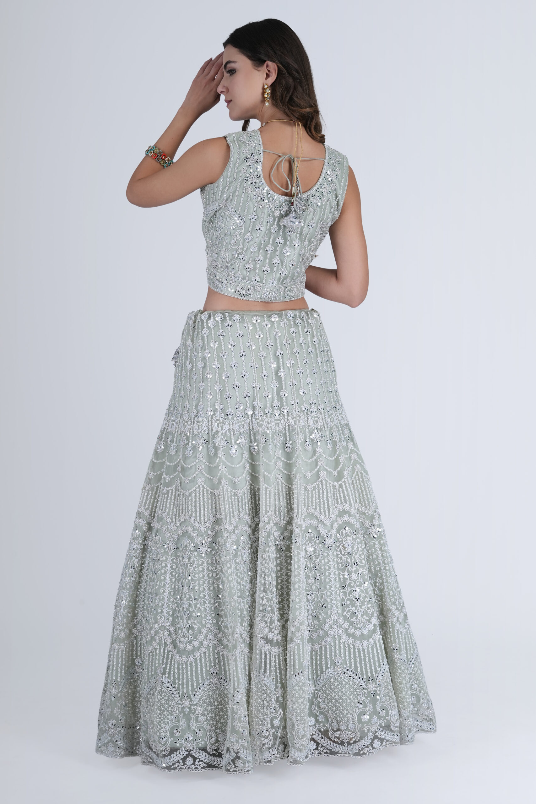 Highlights of the Pista Green Embellished Lehenga Choli: