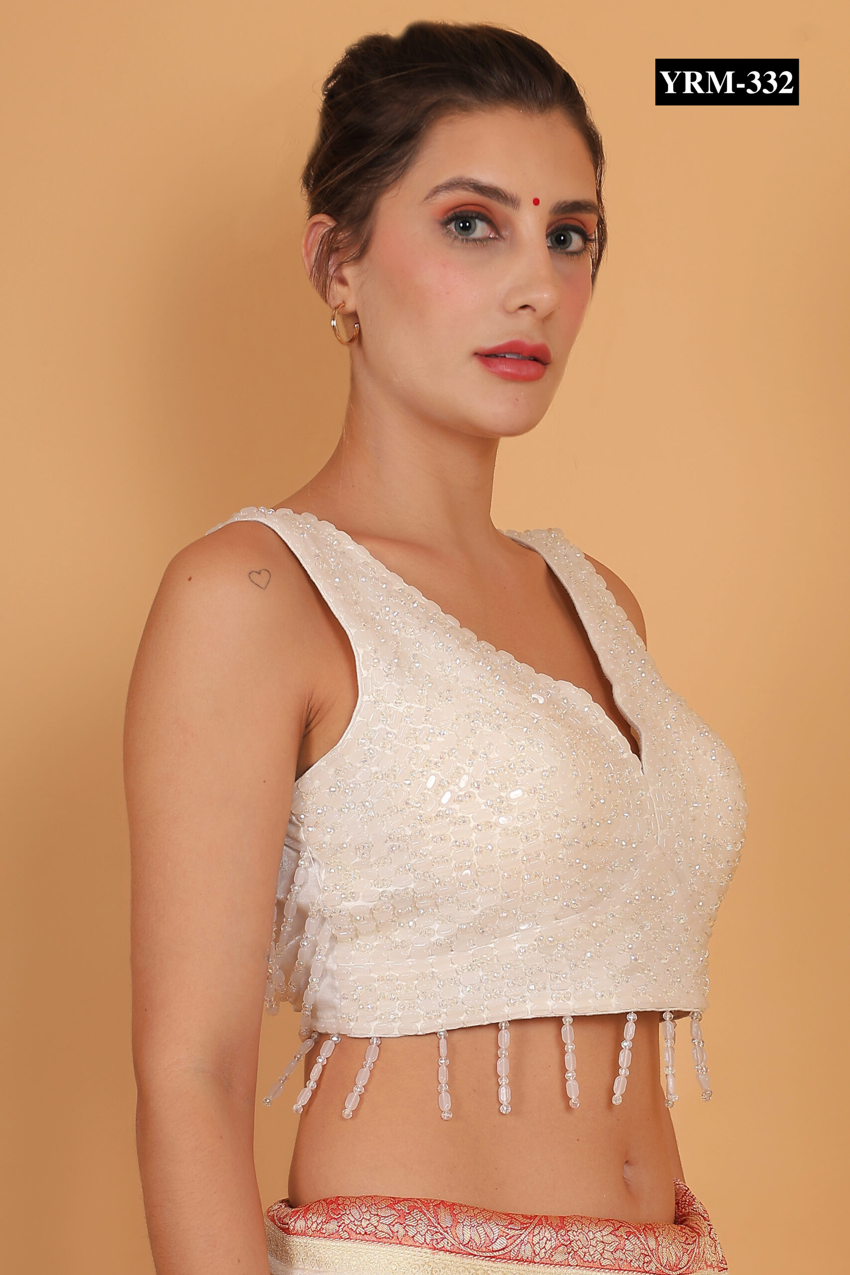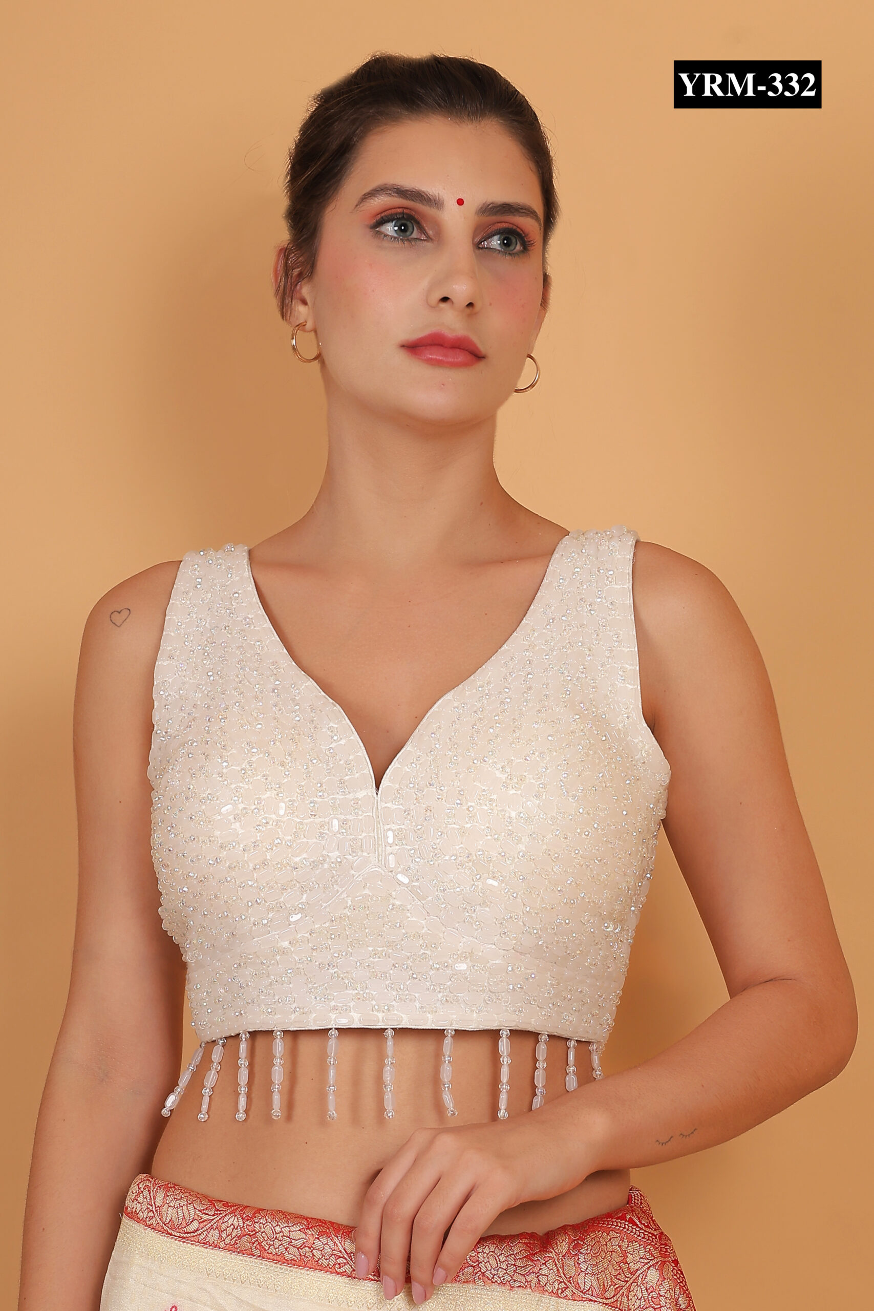 Add a playful yet elegant touch to your festive wardrobe with the White Pearl Tassel Blouse. The delicate pearl detailing creates subtle shimmer, while the stylish tassels bring movement and charm to your look. Designed for celebrations, weddings, or evening parties, this blouse blends timeless sophistication with modern flair.