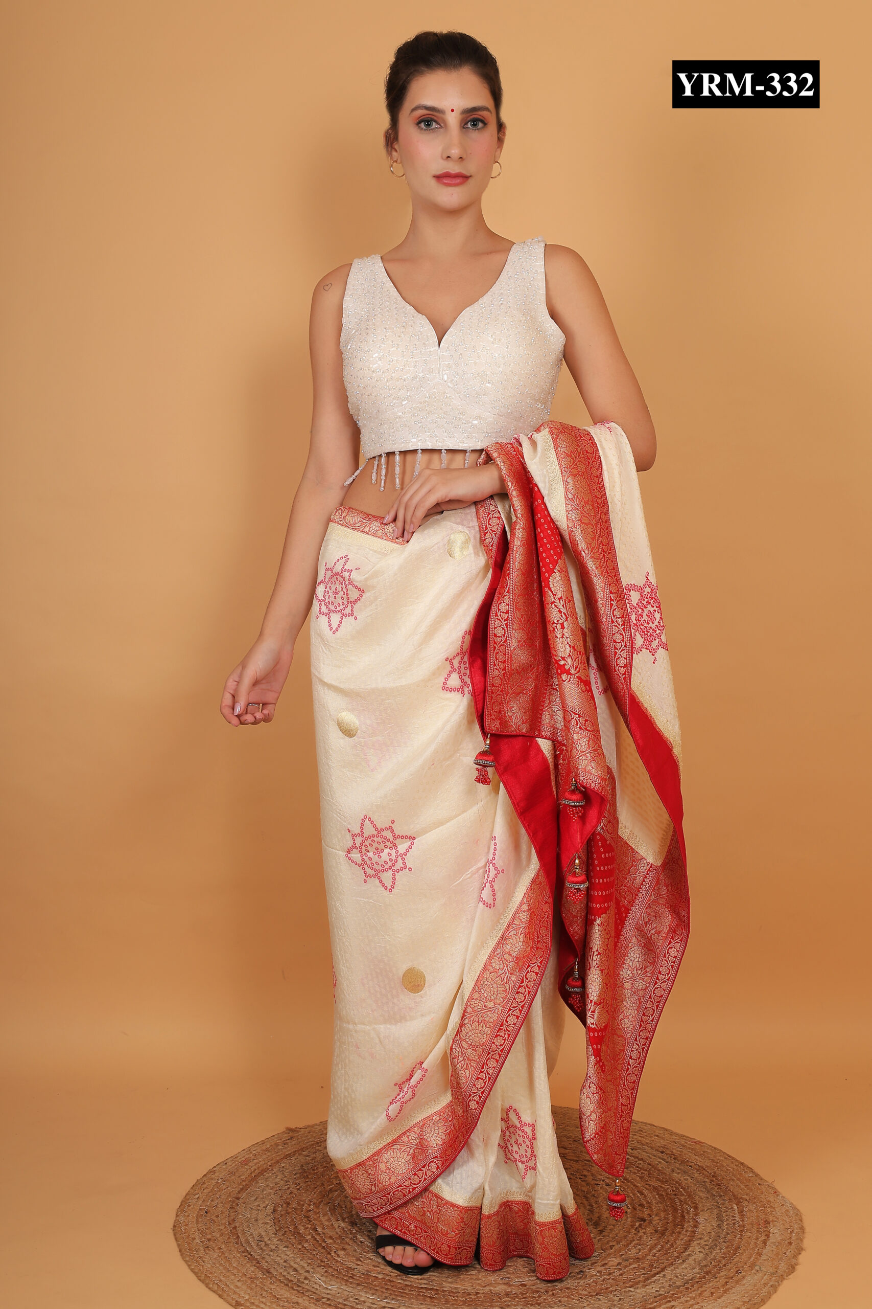 Style this White Pearl Tassel Blouse with pastel or contrasting sarees and skirts for a chic, celebratory ensemble. The pearl and tassel combination creates a subtle sparkle that catches light gracefully, enhancing your overall elegance. Pair it with statement jewelry or delicate accessories to complete a polished festive look.