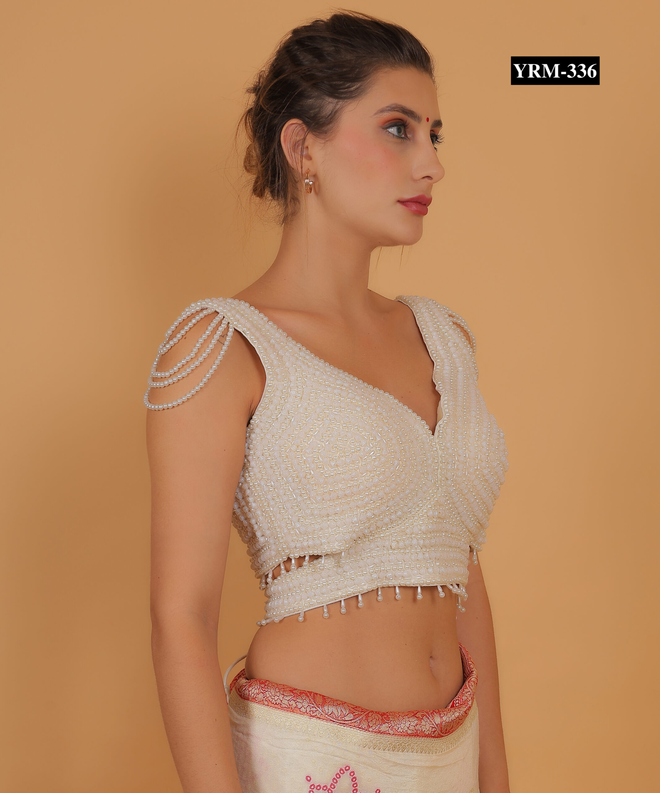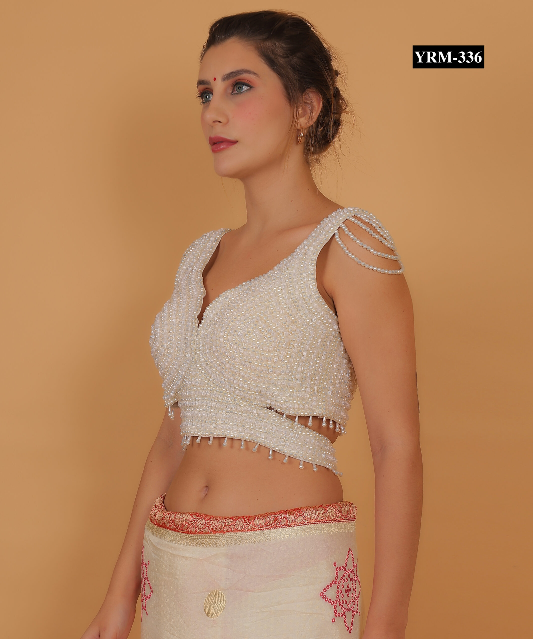 The White Pearl Belted Blouse balances modern design and timeless elegance. Every stitch and pearl reflects careful craftsmanship, creating a refined, high-quality piece. Its versatile style ensures it remains a standout item in any wardrobe, perfect for bridesmaids, modern brides, or fashion-forward festive outfits.