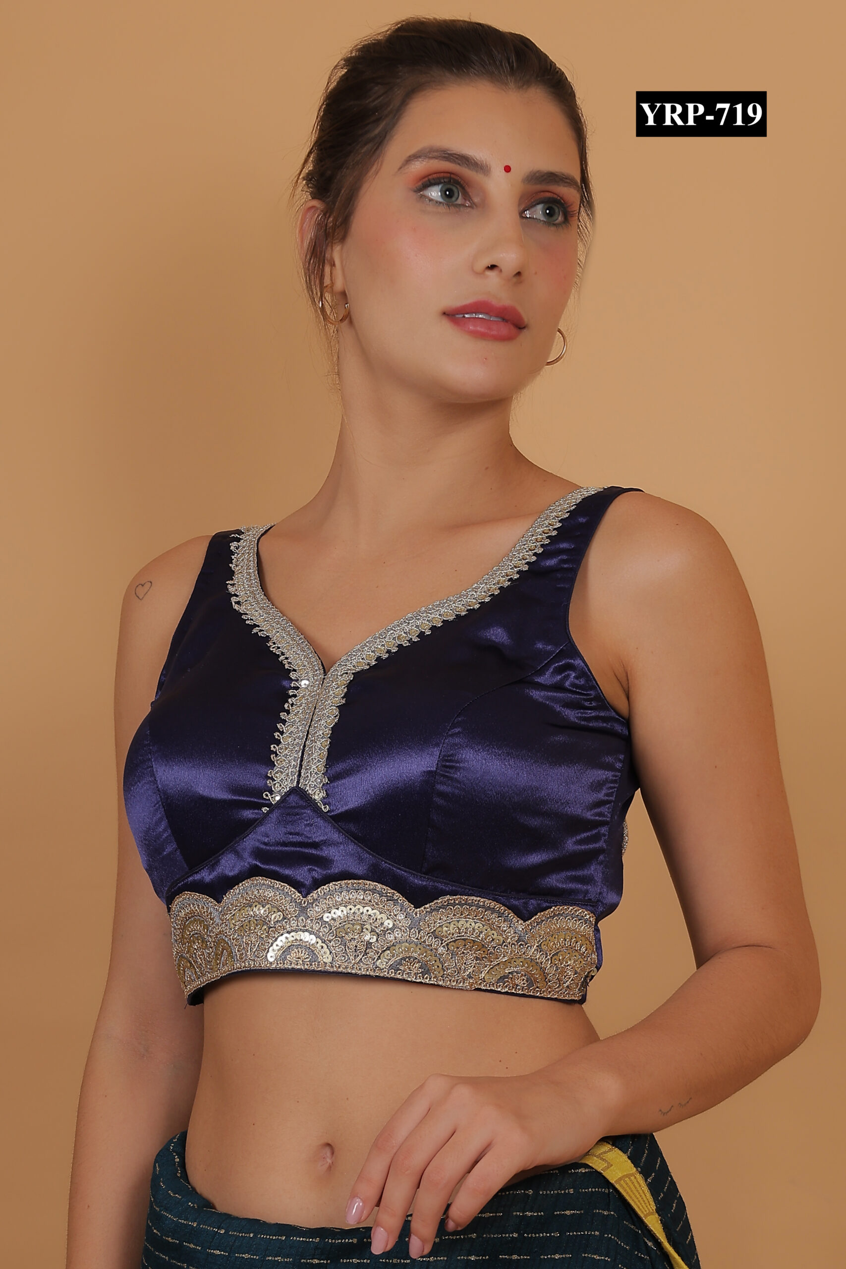 The Royal Blue Silk Blouse pairs seamlessly with traditional and modern ensembles. Its elegant hue complements metallic jewelry, golden embroidery, or contrasting sarees, creating a look that is both vibrant and regal. Whether you choose to accessorize minimally or make a statement, this blouse enhances your outfit effortlessly.